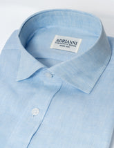 Confeccionada en lino 100%, esta camisa en tono celeste ofrece ligereza y transpirabilidad, pensada para un uso cómodo en climas cálidos.